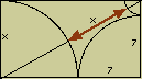 Berechnen Sie den Radius x des kleinen Kreises aus der Breite b=12 des grossen Halbkreises. |
