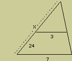 | Einem Quadrat der Seite 2.4 ist ein rechtwinkliges Dreieck umbeschrieben, dessen eine Kathete dreimal