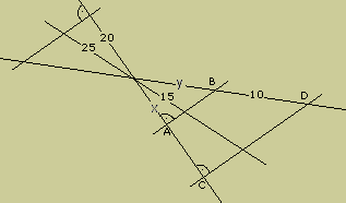 Berechnen Sie die unbekannten Streckenlängen x und y. |