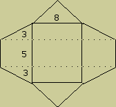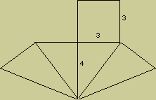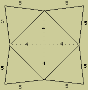 | Die vordere Fläche wird aus vier Quadraten der der Seitenlänge 3 gebildet.