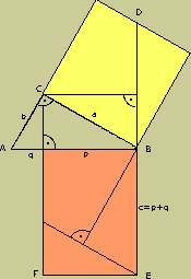 Behauptung: das rote Rechteck und das gelbe Quadrat sind flächengleich.